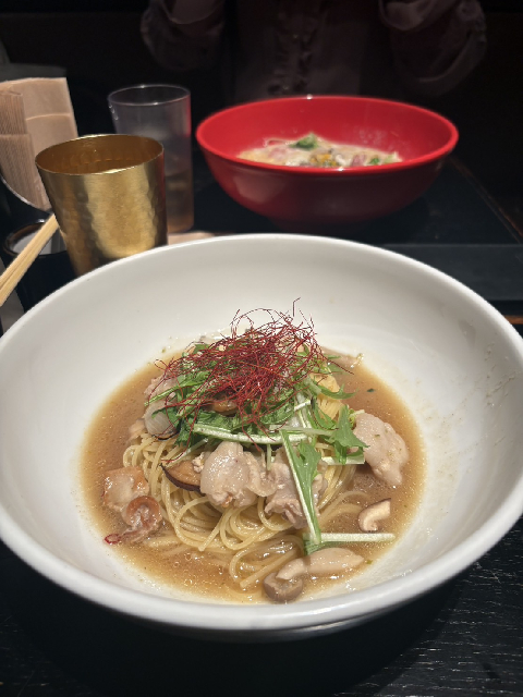 五右衛門パスタと混同してたけどこっちはパスタを箸で食べる系の店。五右衛門も名前的に箸で食べそうだけどナ